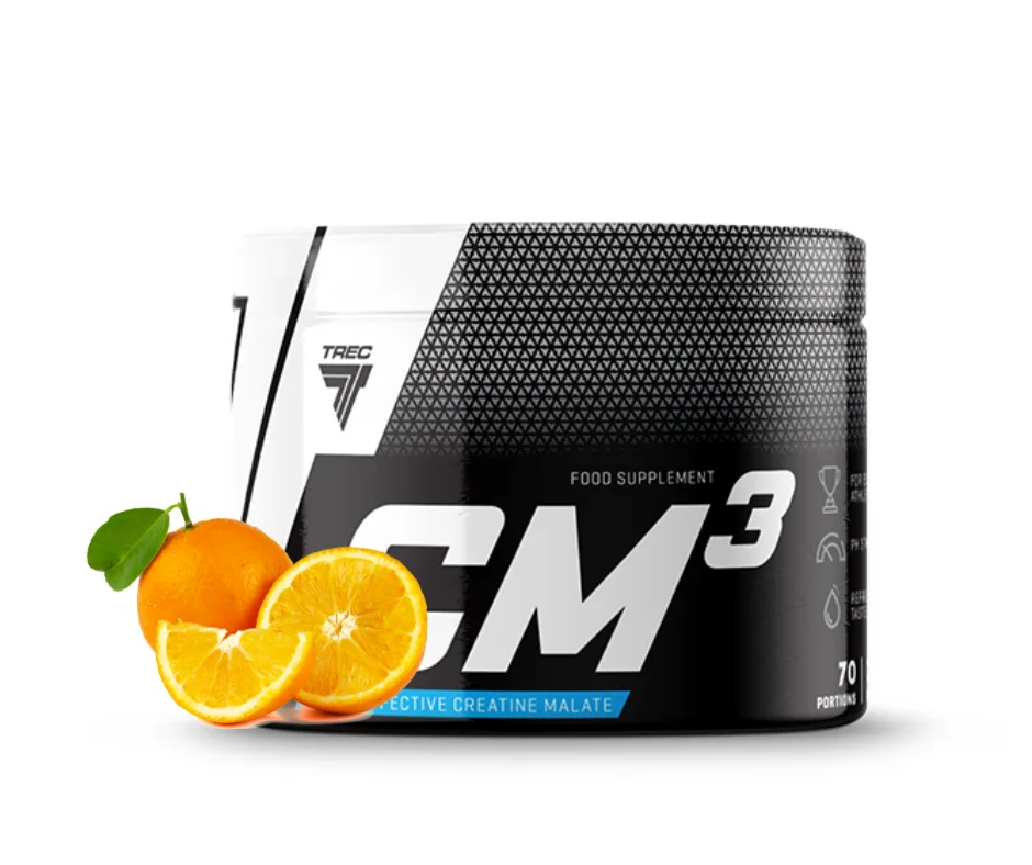 Trec CM3 is een voedingssupplement. CM3 is een preparaat dat creatine malaat bevat. Het is een stabiele, zuurbestendige en zeer goed oplosbare vorm van creatine. Regelmatige suppletie van 3 g creatine per dag verhoogt de fysieke prestaties bij opeenvolgende korte, zeer intensieve fysieke inspanningen. CM3 wordt aanbevolen als hulpmiddel om een topvorm te bereiken, met name in kracht- en snelheidskrachtdisciplines.